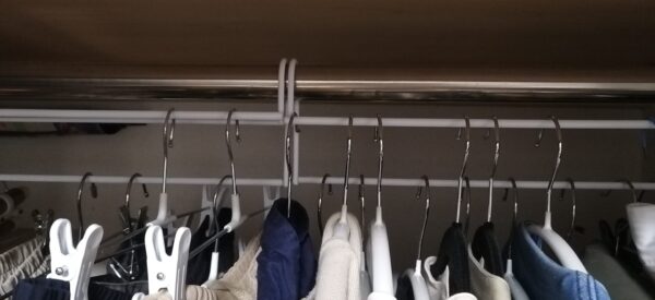 バーにかけるだけで、上下に二段のハンガースペースが生まれ、