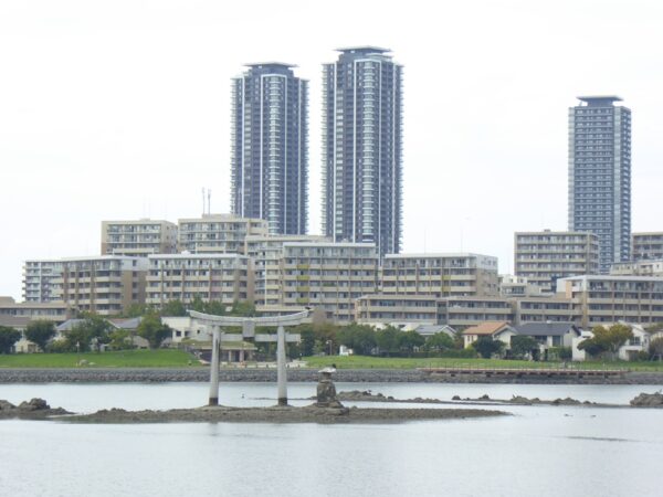 見どころは、香椎宮の末社である「御島神社」で、海の中に鳥居が立っています。