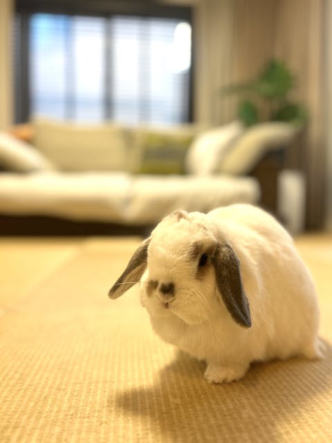 そこに、さらに飼っているホーランドロップウサギのランも加わって、
