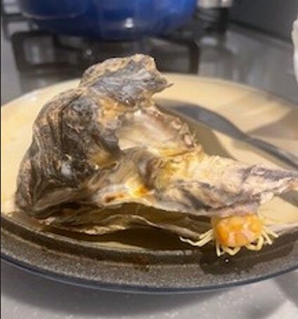 (写真は、牡蠣を蒸したときに出てきてくれた小さなカニサン🦀長崎県産の小長井牡蠣でした)