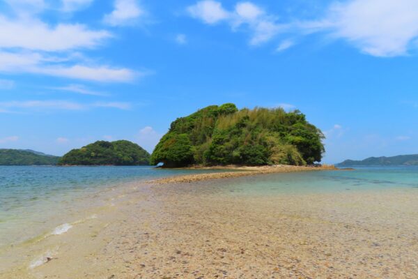 干潮時だけ現れる砂の道を渡って、ちょっとした冒険気分。