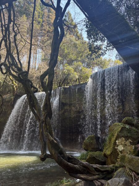 その後は小国町へ向かい、裏側からも眺められる神秘的な「鍋ヶ滝」へ。