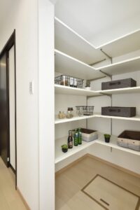パントリーとは、食品庫として使われるほか、日常的に使わない食器や家電の収納スペースとしても活用できる場所のことです。