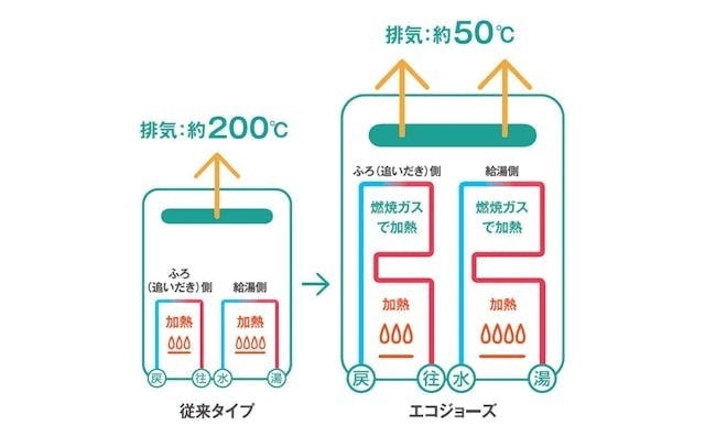 エコジョーズとは、省エネ性の高いガス給湯器のことで、