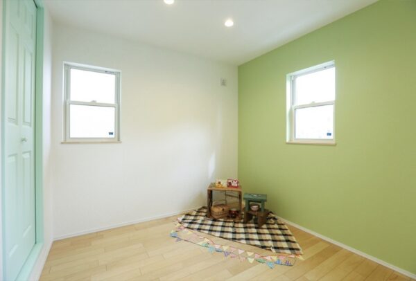 今回のリフォームでは、壁紙を優しいグリーン系に変更し、