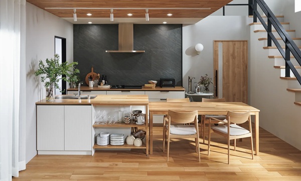 リビングの家具や内装に合わせた、統一感のある自分だけのキッチン空間を実現できます。