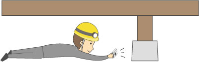 原因を突き止めるためにまず床下点検を行うことにしました。
