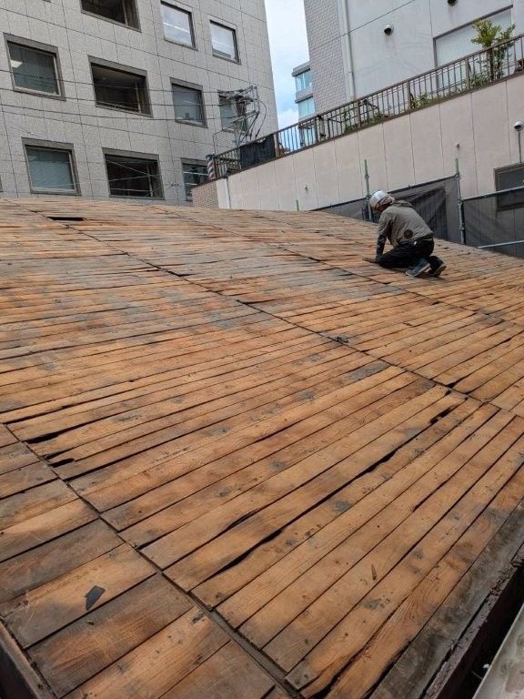 「30年住める家」の土台は、まず頭上から。 古い瓦をすべて下ろし、傷んだ野地板を剥がしました。