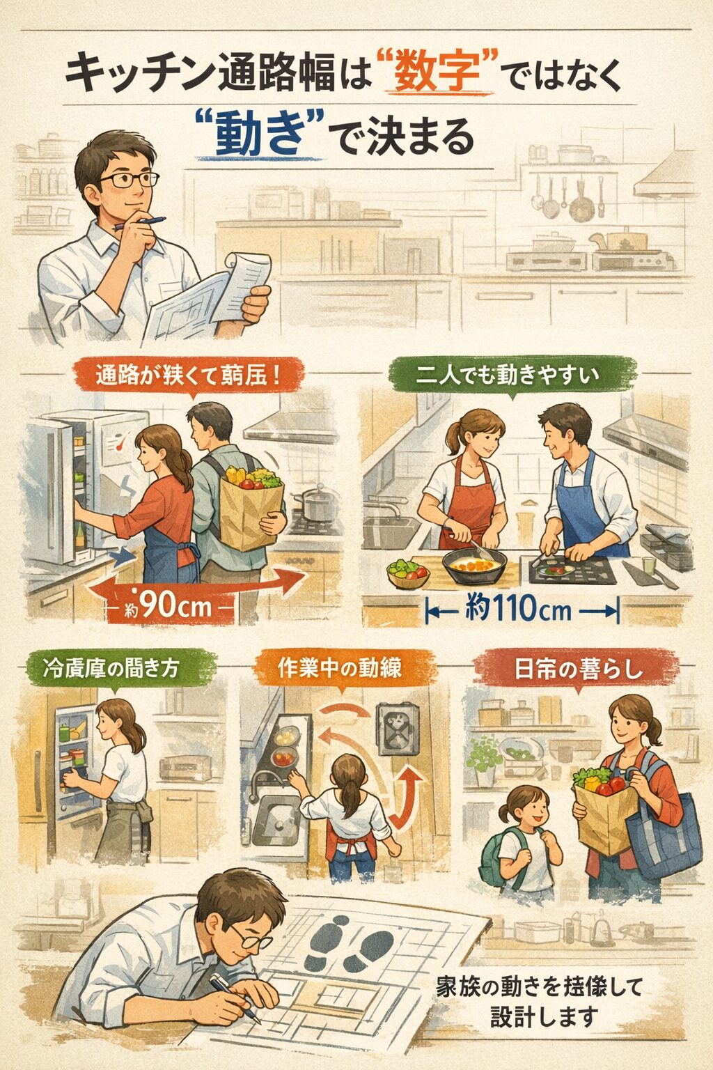 設計者が考える、キッチン通路幅のちょうどいい距離感