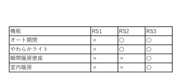 デメリット:便座を瞬間的に温める「瞬間暖房便座」はRS3以上でないと搭載されていません