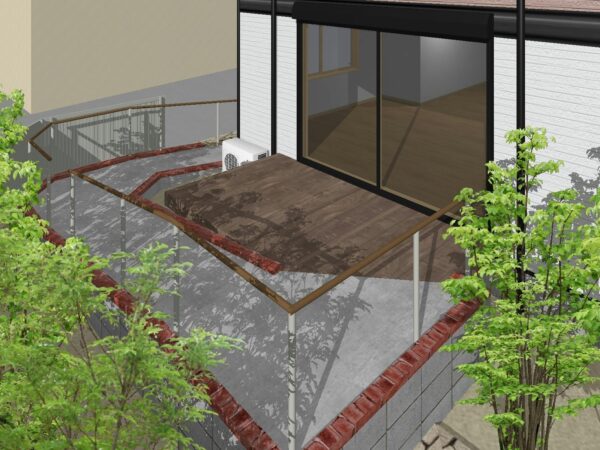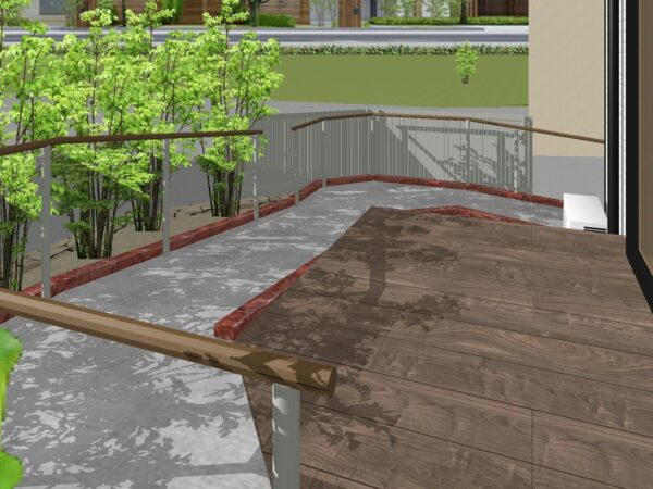 高低差の調整: 手前(道路側)から奥(デッキ側)にかけて、