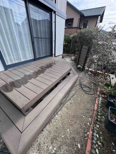 今回の現場でも、建物と境界線の間の限られたスペースでウッドデッキの高さまで