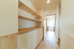 玄関スペースに設けたオリジナル造作の柵も