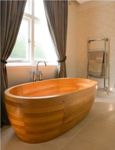 木のお風呂と言っても檜風呂とはちょっと趣が違うこちらのお風呂!