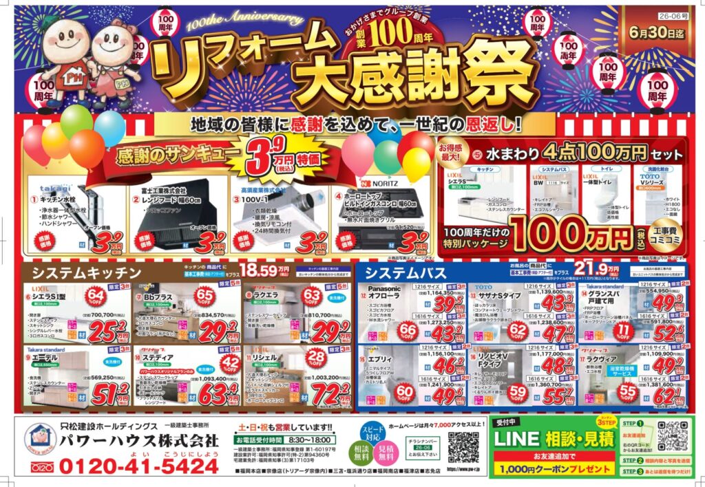 【4月】最新セールチラシ情報 ~おかげさまでグループ創業100周年 リフォーム大感謝祭!~