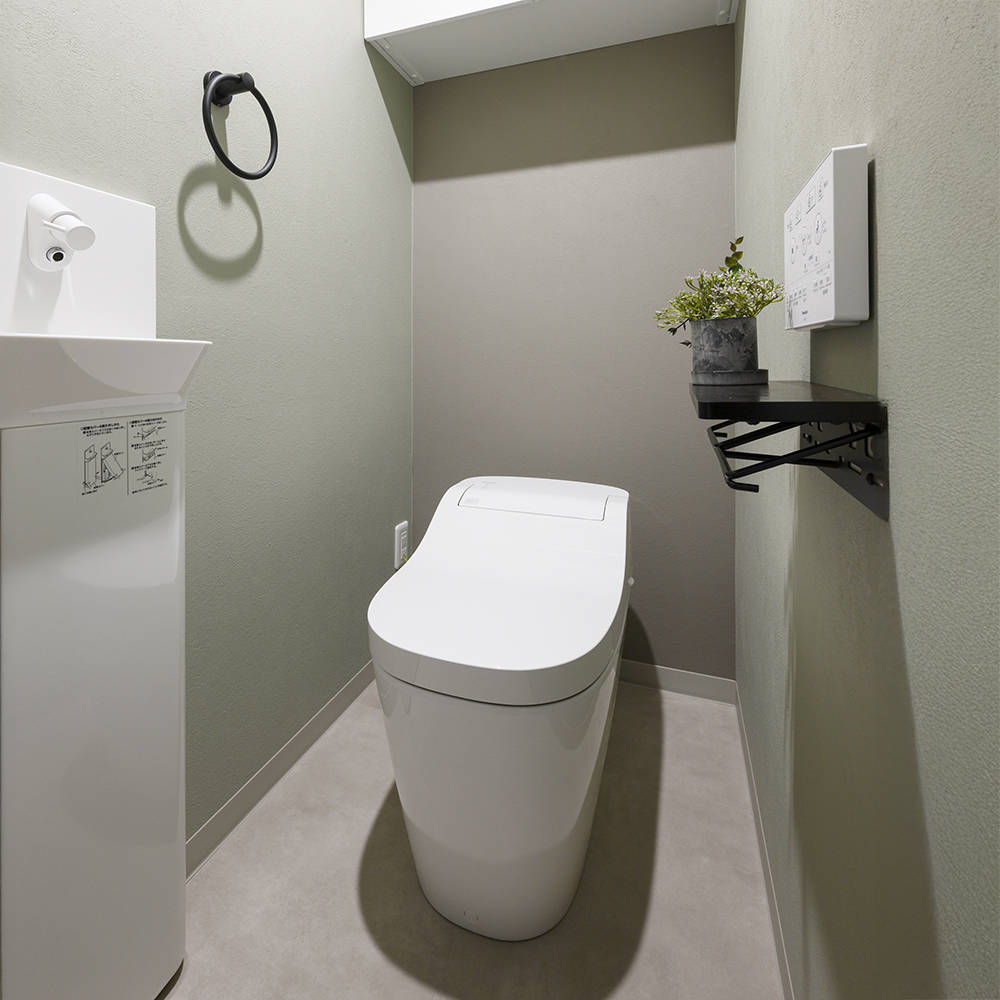 統一感を崩さないデザインと実用的なトイレ。