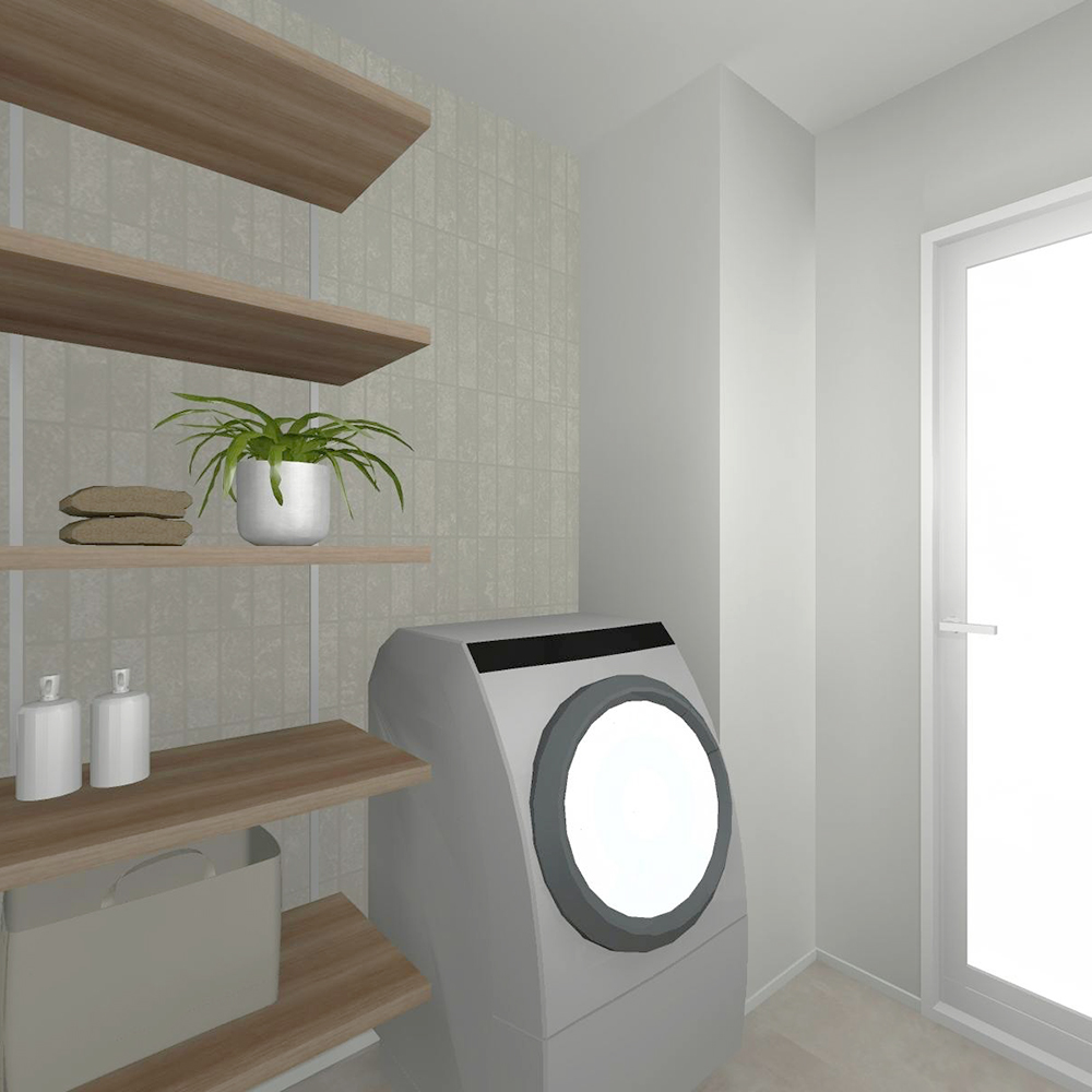 キッチンから洗面所へ直接アクセスできる動線を整え、日々の家事負担を軽減しました。