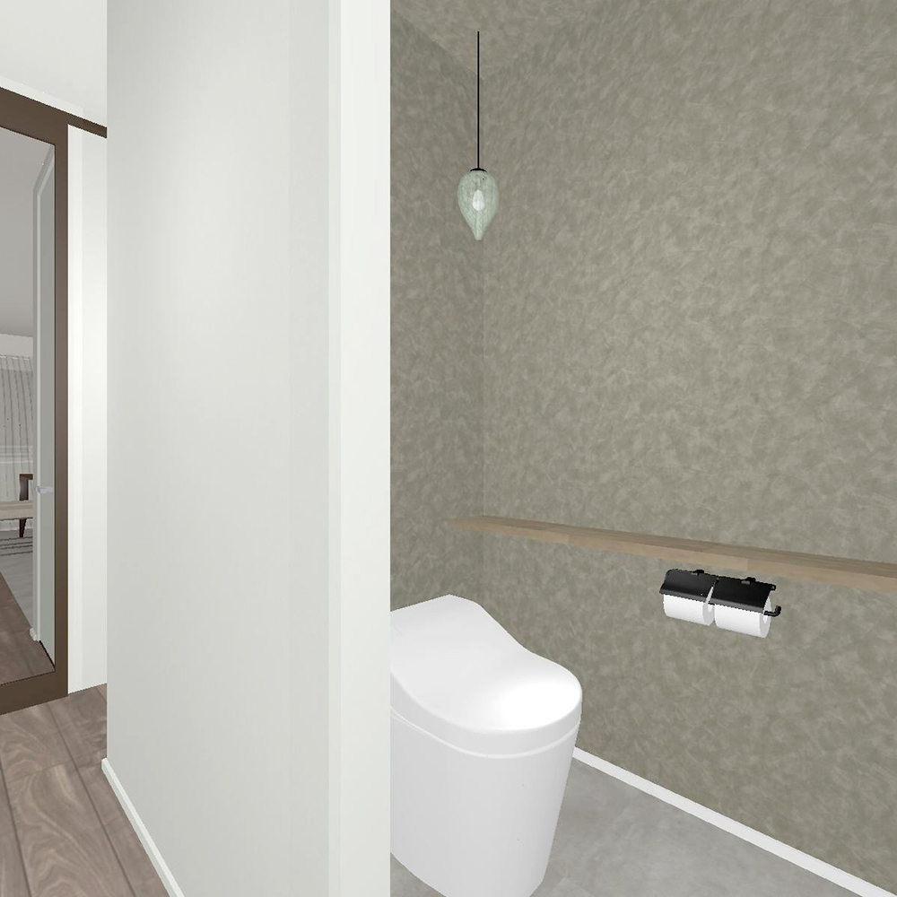 トイレはベージュのスタッコ柄の壁紙が陰影を作り出して素敵な雰囲気です