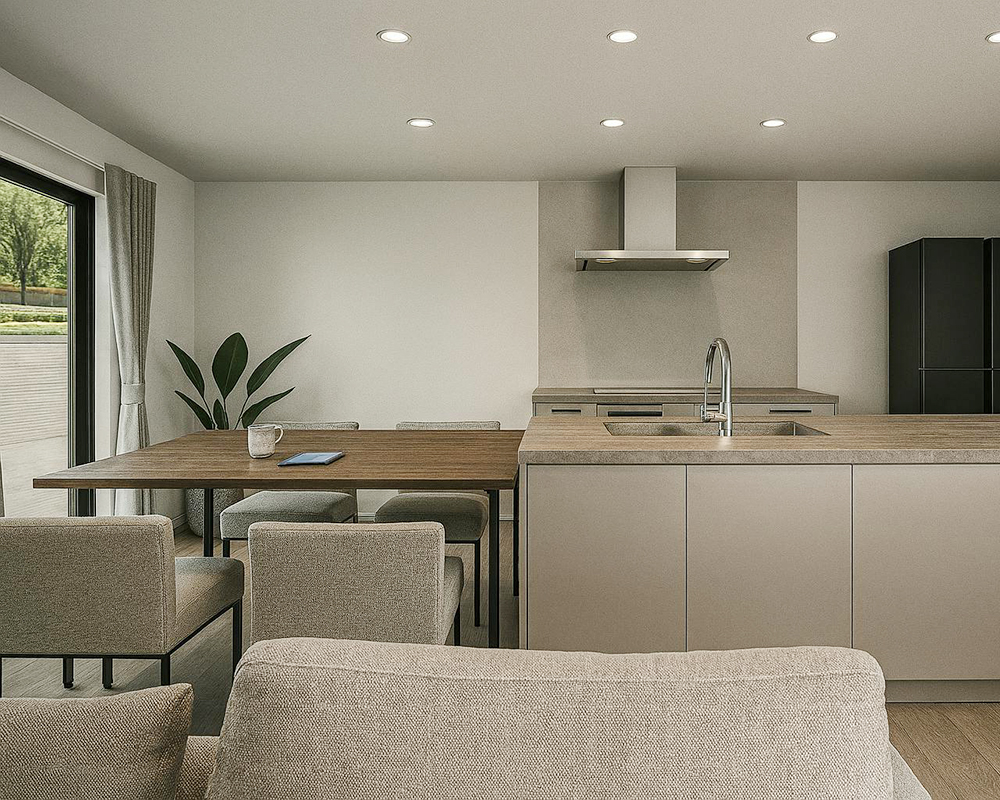 グレージュを基調にした、やわらかでモダンな雰囲気が感じられます
