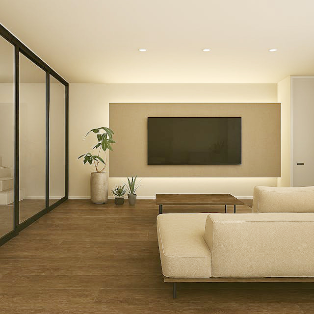 TVの背面には、スタイリッシュな見た目で、SNSでも非常に人気のあるモールテックスを使用