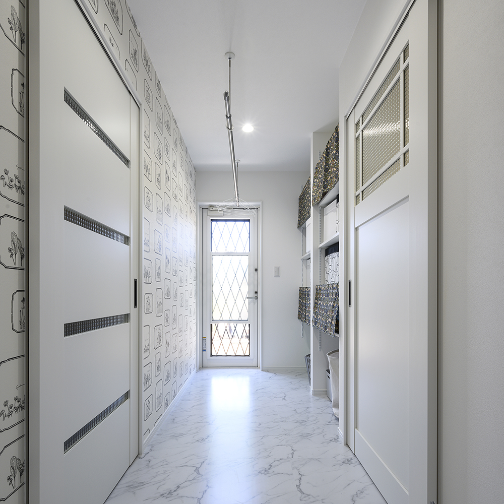 シューズクローク、パントリー等、可動棚施工にて、使い勝手の良い仕上がりになっていると思います。