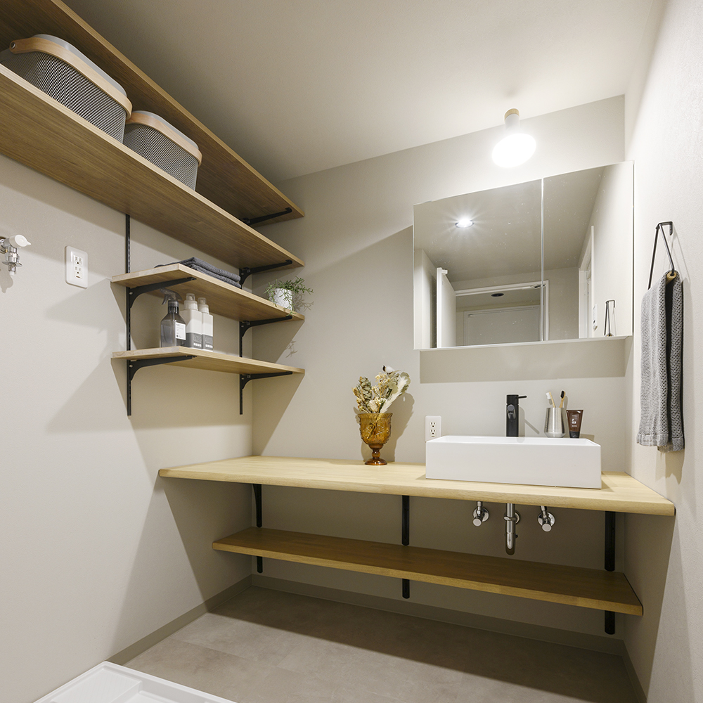 インスタでも人気のミラタップ(旧サンワカンパニー)で造作風洗面台に。