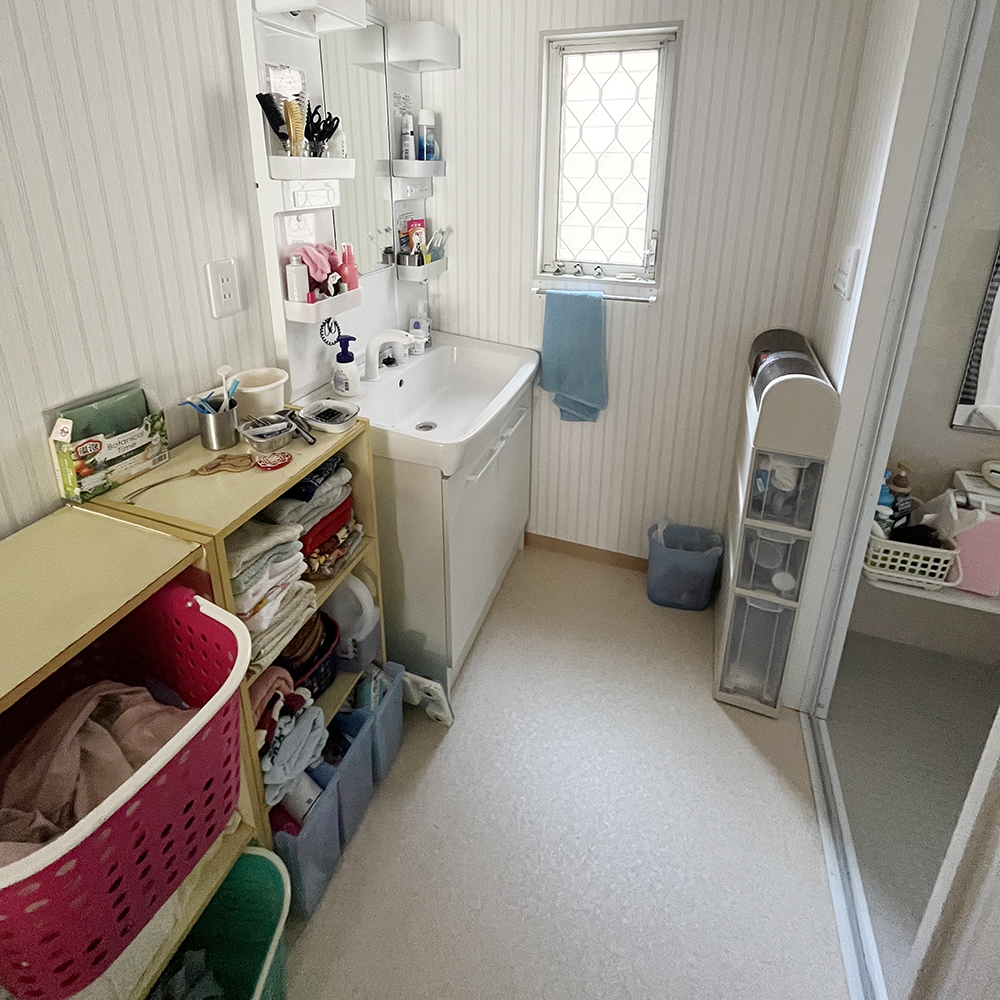リフォーム前の洗面所は収納場所にも困っておられました。