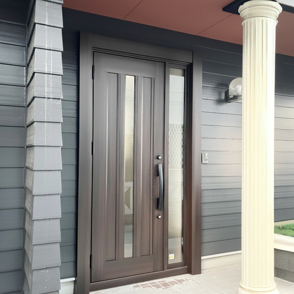 壁を壊さずに、既存の玄関のドア枠の上に新しいドアを枠ごと取り付けるカバー工法「リシェント」
