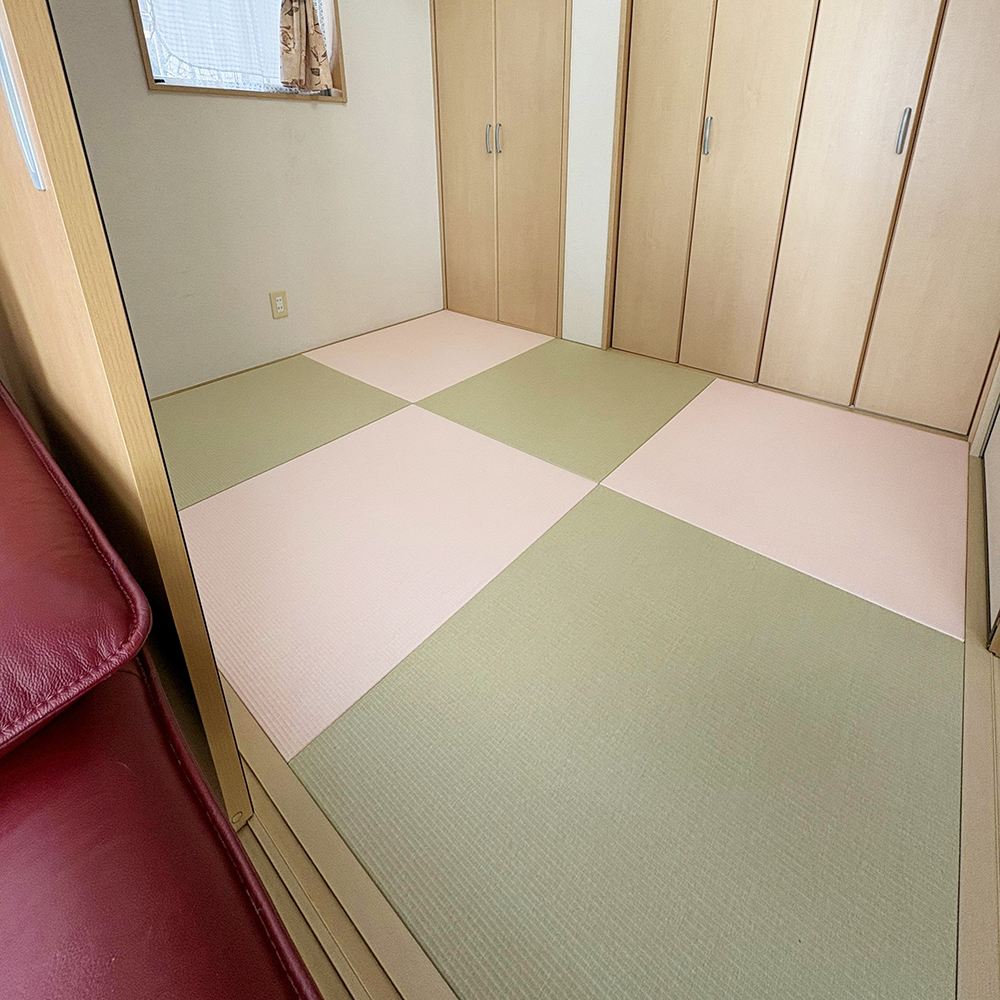 畳の色を2色で市松にしたので、とても可愛い空間になりました。