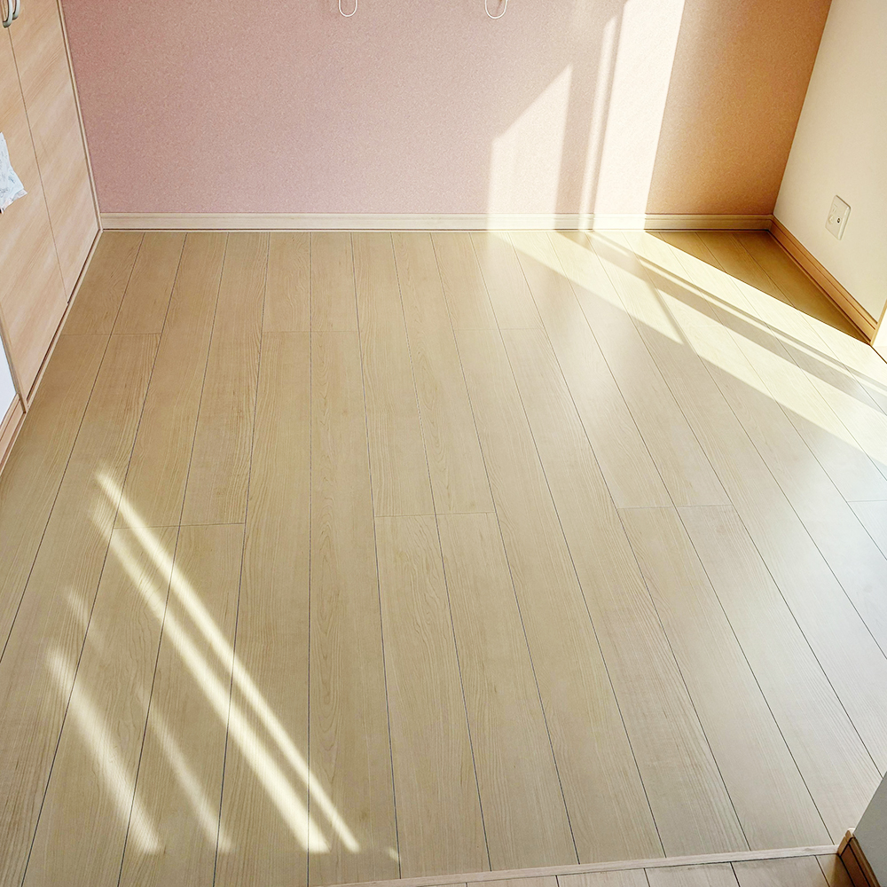 左隅に見える既存のフローリングに近い色を選びました。