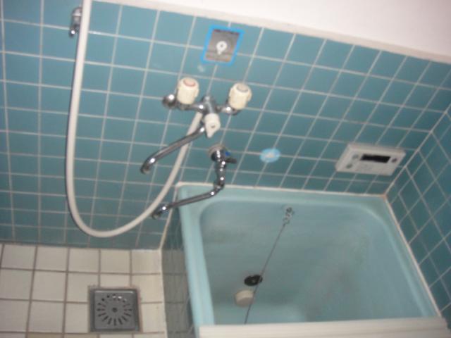 タイル貼りの浴室は狭く、暗い印象でした。